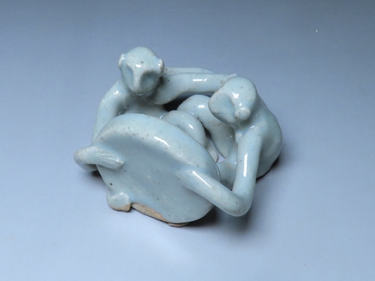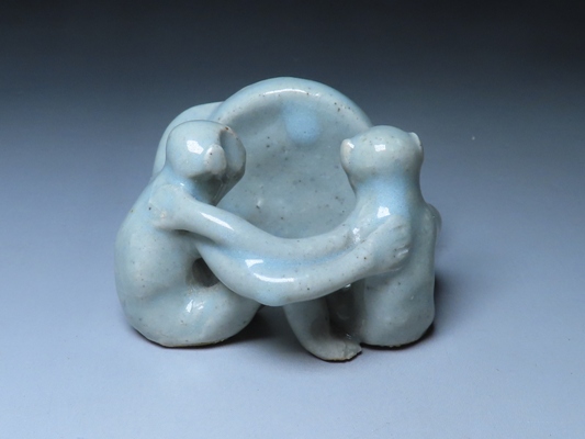 横井米禽作 二猿太平楽蓋置