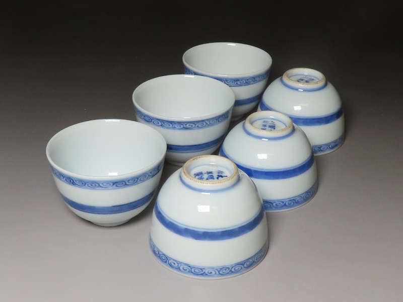4代三浦竹泉作 染付網紐煎茶碗 6客
