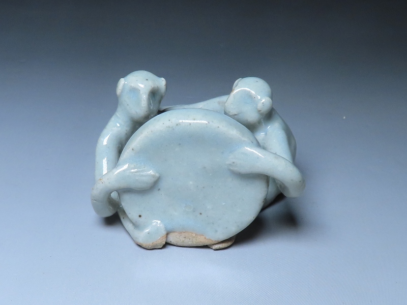 横井米禽作 二猿太平楽蓋置