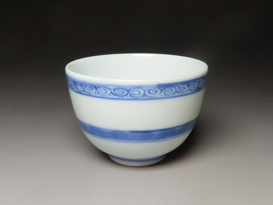 4代三浦竹泉作 染付網紐煎茶碗 6客